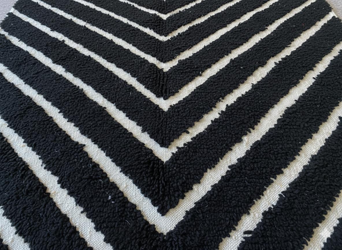 Transform your space with our stunning Black Area Rug, a perfect blend of retro charm and modern style. This handmade Shag Carpet features a unique striped pattern, inspired by traditional Beni Ourain designs using soft wool for ultimate comfort. Ideal as a custom Moroccan rug or a vibrant floor accent, it adds warmth and character to any room. Elevate your decor with this eye-catching striped pattern Berber rug that effortlessly combines elegance and coziness. Perfect for living rooms, bedrooms, or any chic space!