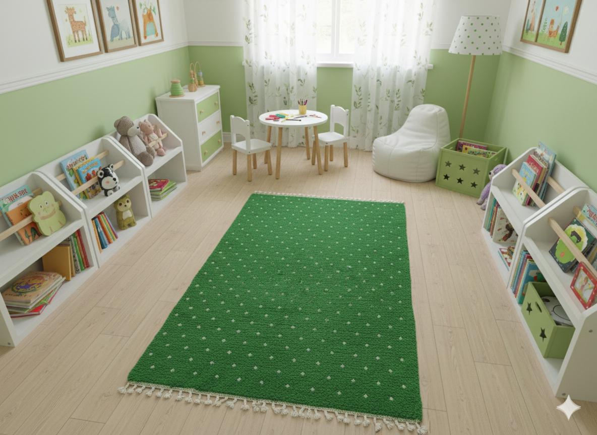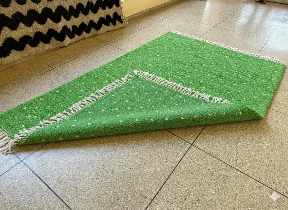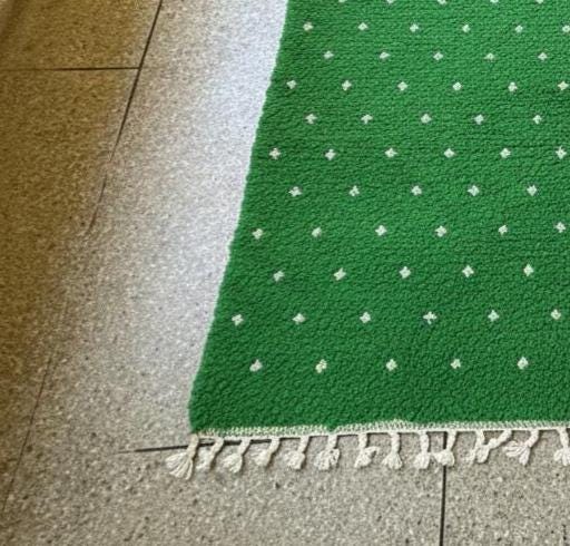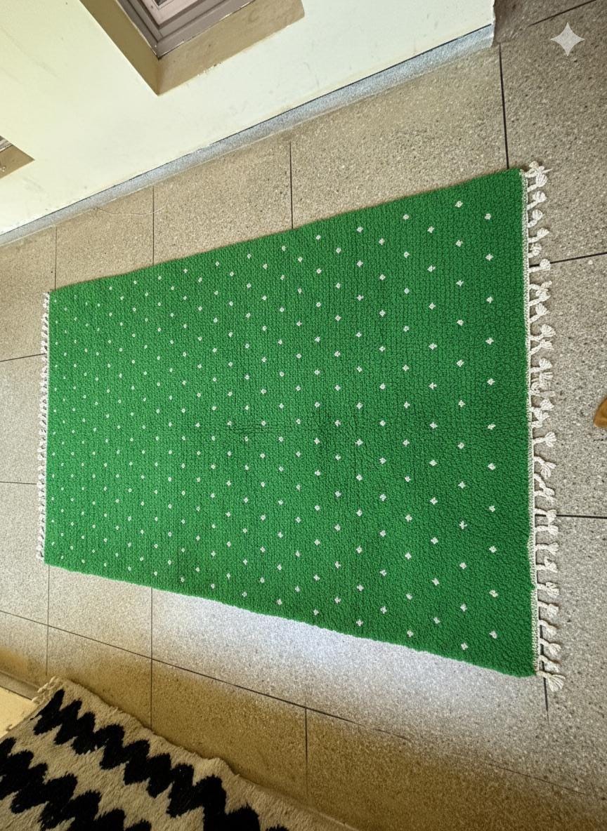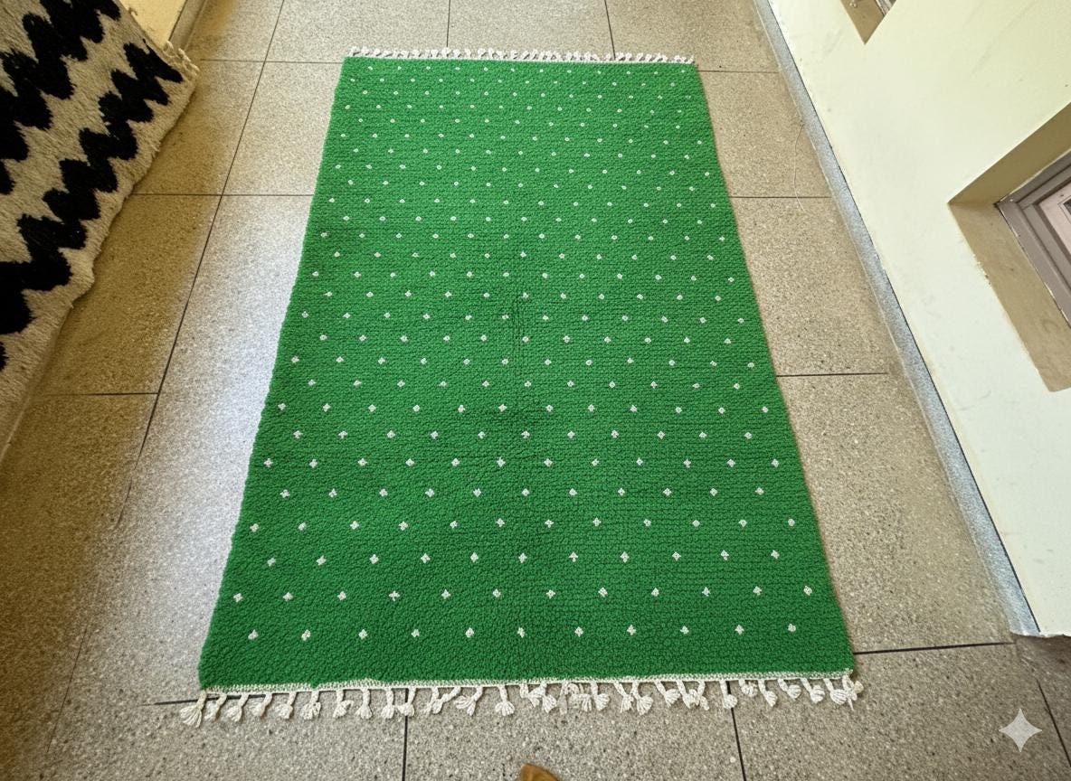 Transform your space with our stunning Pretty Berber Carpet—a Handmade Moroccan Rug that exudes elegance. Featuring a unique dotted Beni Ourain design in vibrant Green and crisp white, this shaggy custom area rug adds a touch of luxury to any room. Perfect for living rooms, bedrooms, or as a statement piece in your home, it's an eye-catching alternative to traditional Home Depot rugs. Elevate your decor with this exquisite wool rug that combines style and comfort effortlessly!