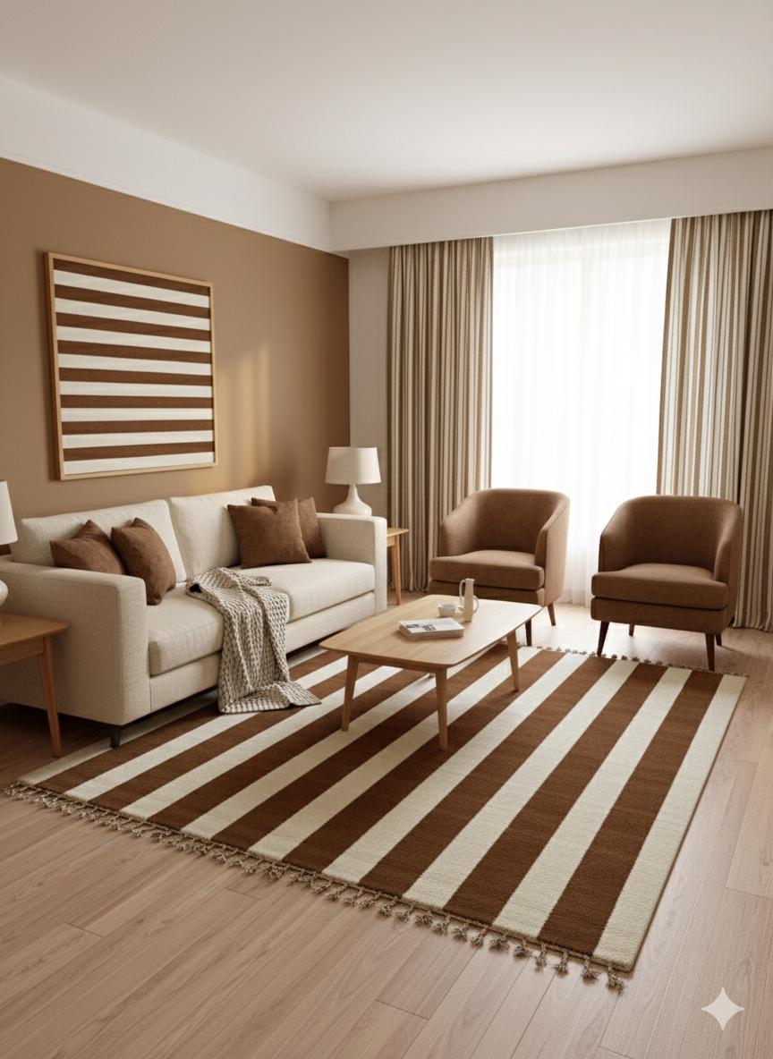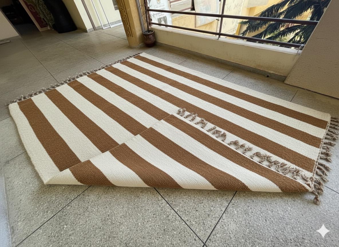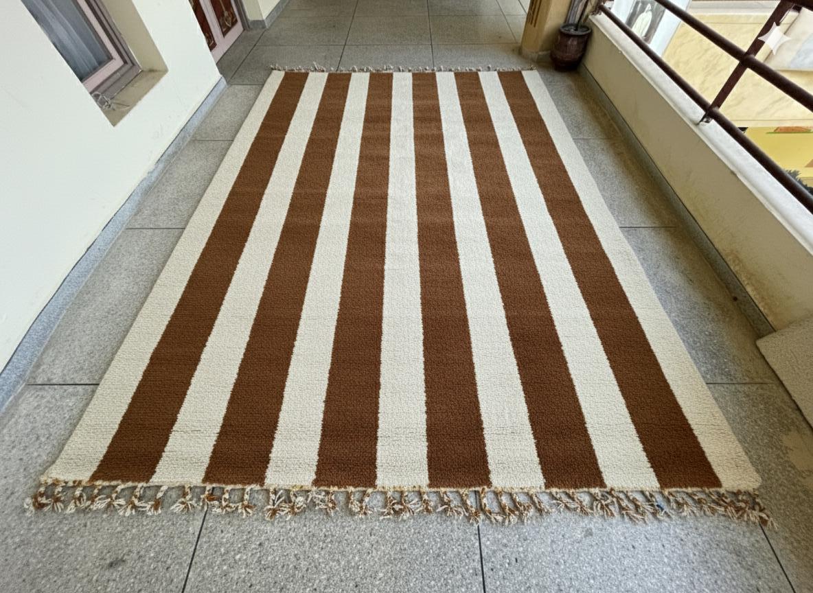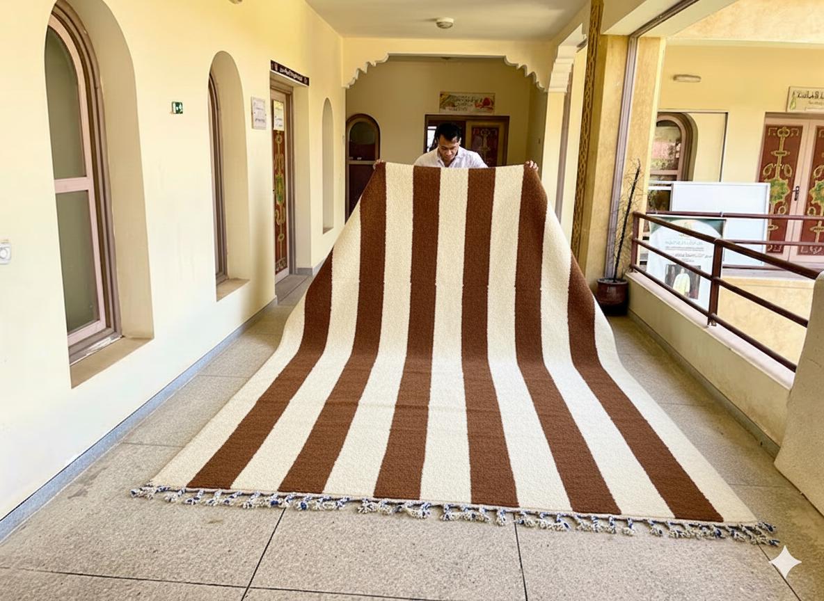 Elevate your space with our Authentic Moroccan Beni Ourain Rug! Handcrafted by skilled artisans, this genuine wool rug showcases a stunning striped style, blending rich brown and white shades for a timeless look. Perfect as an area rug, it adds warmth and texture to any room, from living areas to bedrooms. Each Berber carpet is unique, providing an authentic touch to your home décor. Bring a piece of Morocco into your home with this beautiful, handmade Teppich that stands out and complements your decor.