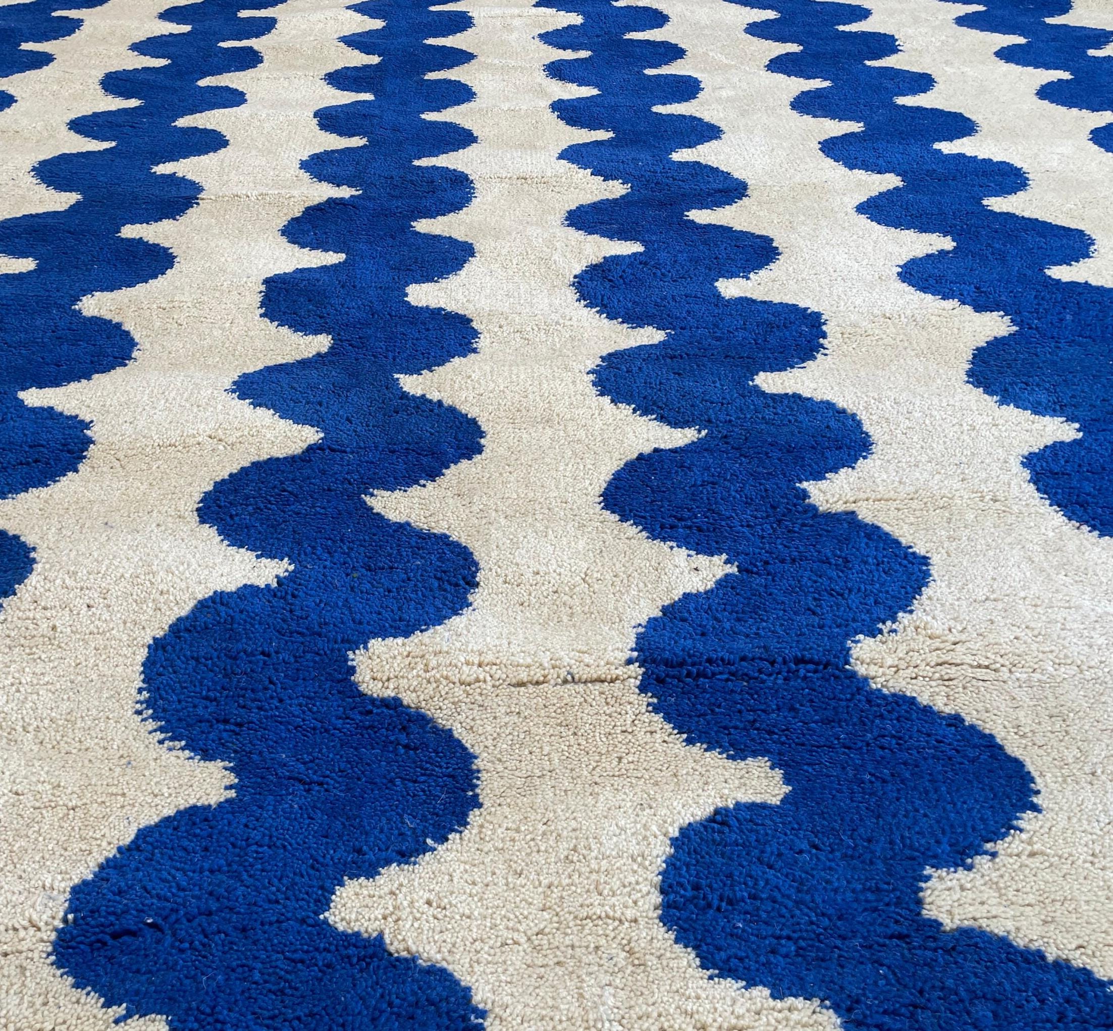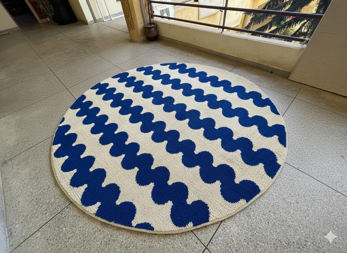 Elevate your space with our stunning Round Beni Ourain Rug in blue and white. This striped Moroccan rug is crafted from genuine lamb wool, offering both warmth and style. Perfect for your living room or any area in need of a cozy touch. Choose a custom size to fit your unique space while enjoying the luxurious feel and timeless design of our Wool Berber rug. Make a statement with this beautiful centerpiece that combines traditional craftsmanship with modern aesthetics. Transform your home today!