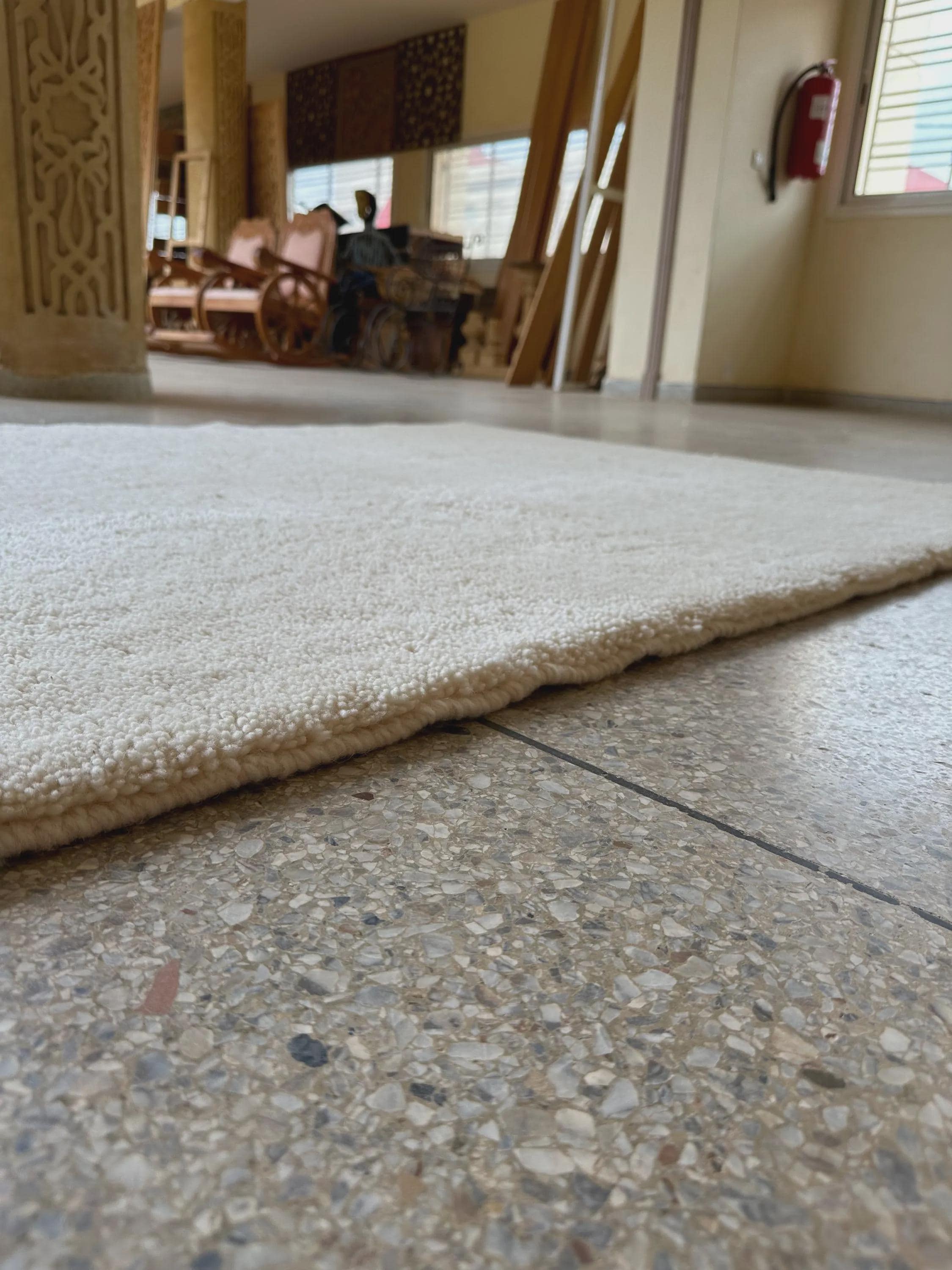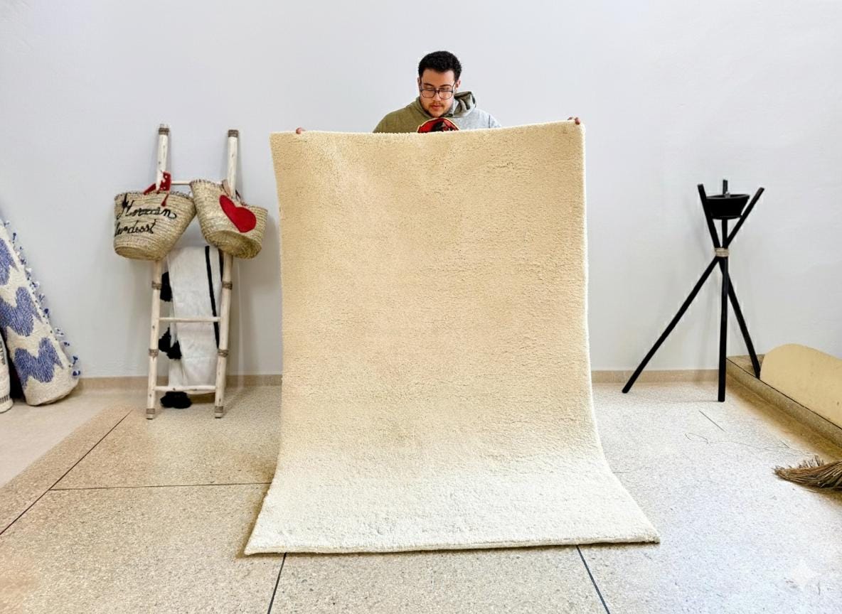 Transform your space with our stunning Moroccan rug in ivory, a solid creamy masterpiece perfect for any room. This plain cream rug boasts the authentic charm of a handmade wool Berber rug, inspired by traditional Beni Ourain designs. Each custom rug is carefully crafted to add warmth and elegance to your home. Whether you're styling a cozy living room or a chic bedroom, this Moroccan area rug will be the perfect finishing touch. Elevate your decor with our timeless and versatile rug today!