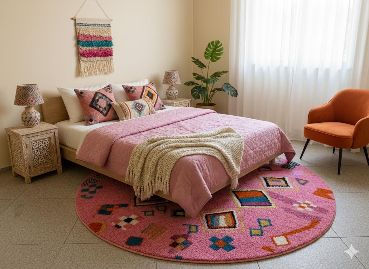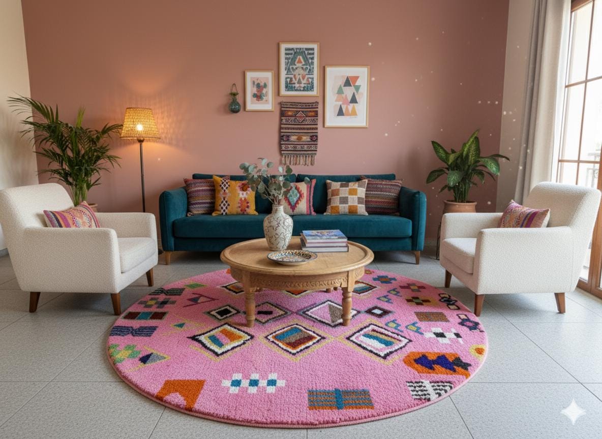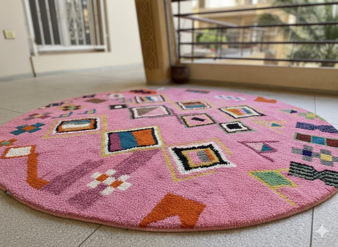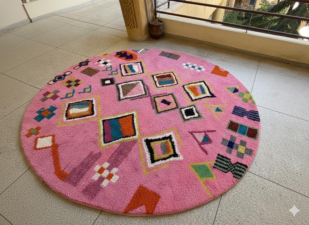 Transform your space with our Moroccan Round Rug – a stunning Beni Ourain Pink Circle Rug that combines traditional craftsmanship with modern design. This abstract handmade carpet showcases the beauty of authentic Berber artistry, making it a statement piece for any room. Each custom wool rug is meticulously crafted to ensure luxury and durability. Add a touch of elegance to your decor with these luxury Beni rugs, perfect for enhancing your home’s warmth and style. Elevate your interior today!