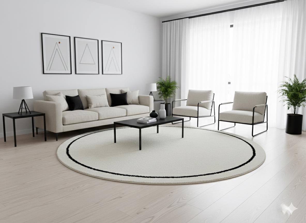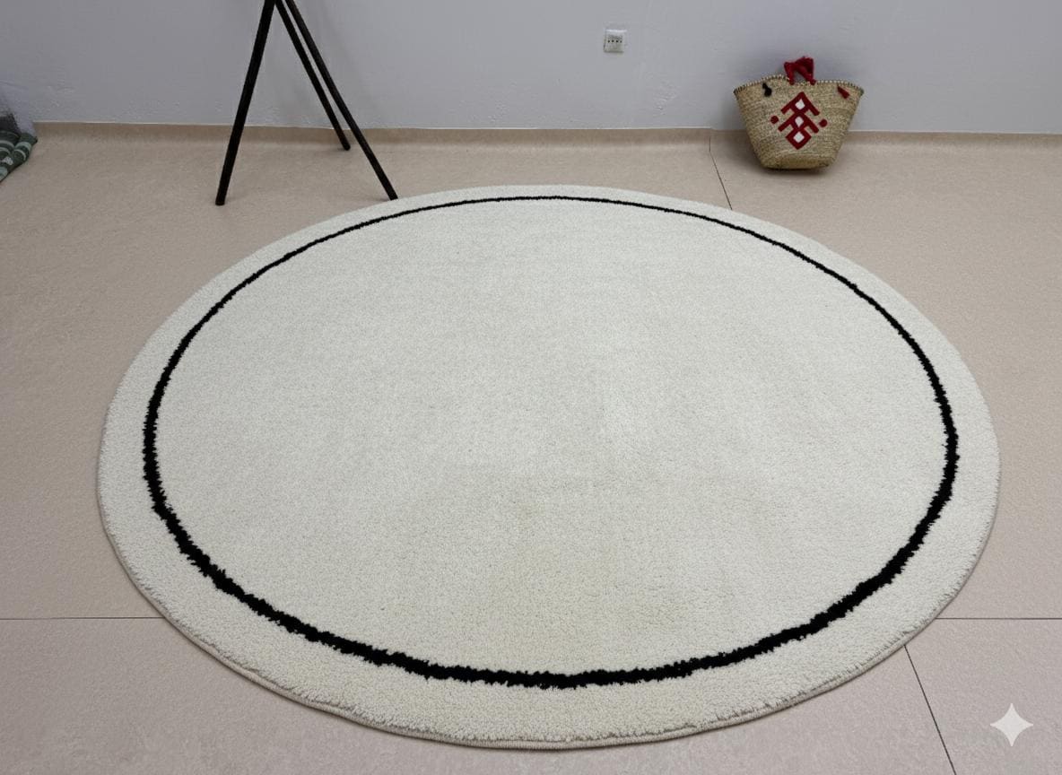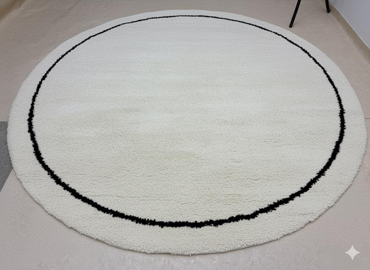 Transform your space with our stunning Round Moroccan Rug, featuring a bordered circle design that beautifully blends tradition and modernity. This custom area rug is crafted from soft, solid Berber wool in elegant white and black hues, adding warmth and character to any room. Each piece is handmade, ensuring unique charm and quality. Elevate your home decor with this versatile addition—perfect for living rooms, bedrooms, or as a statement piece in your entryway. Experience the beauty of Moroccan craftsmanship today!