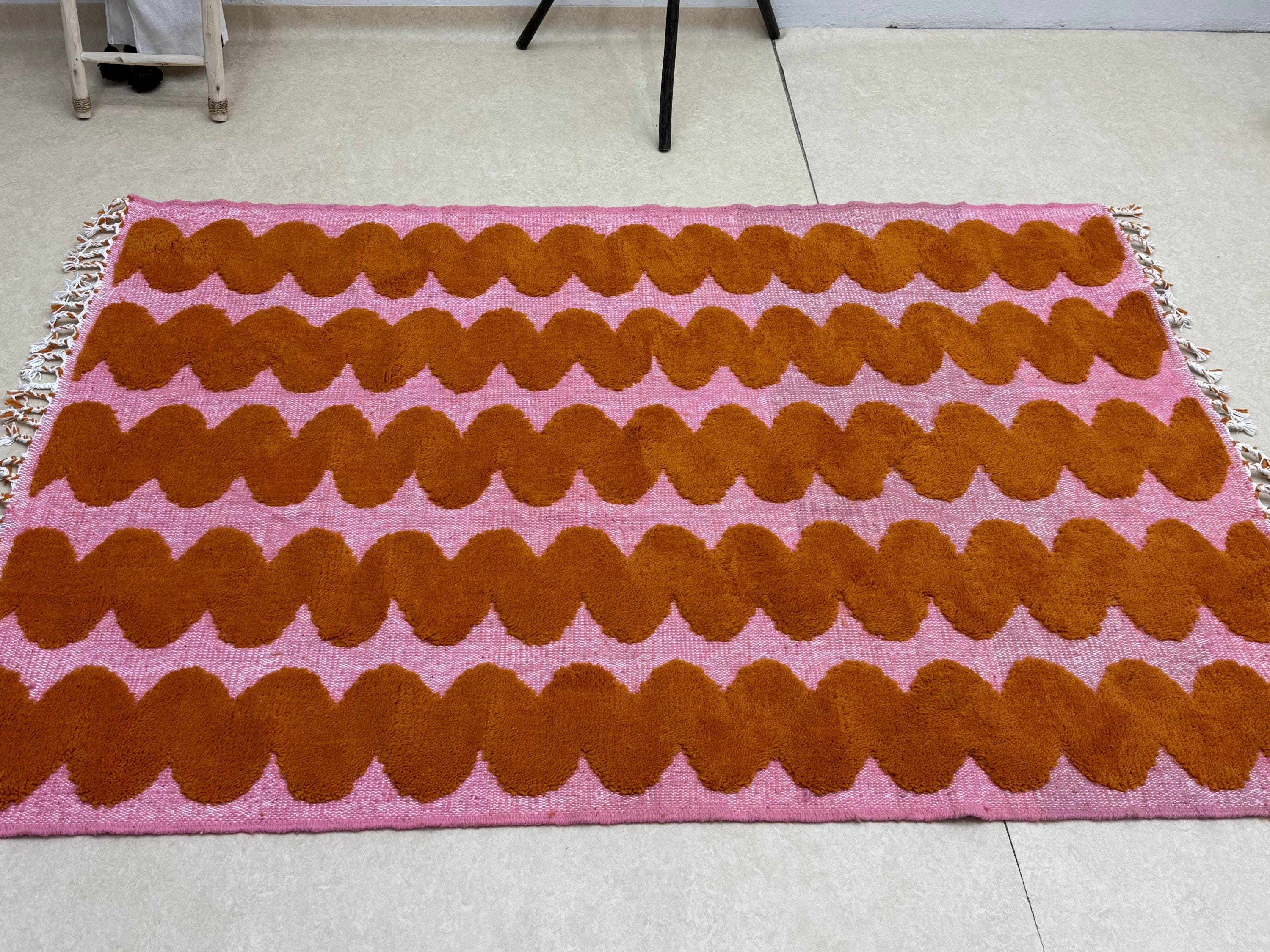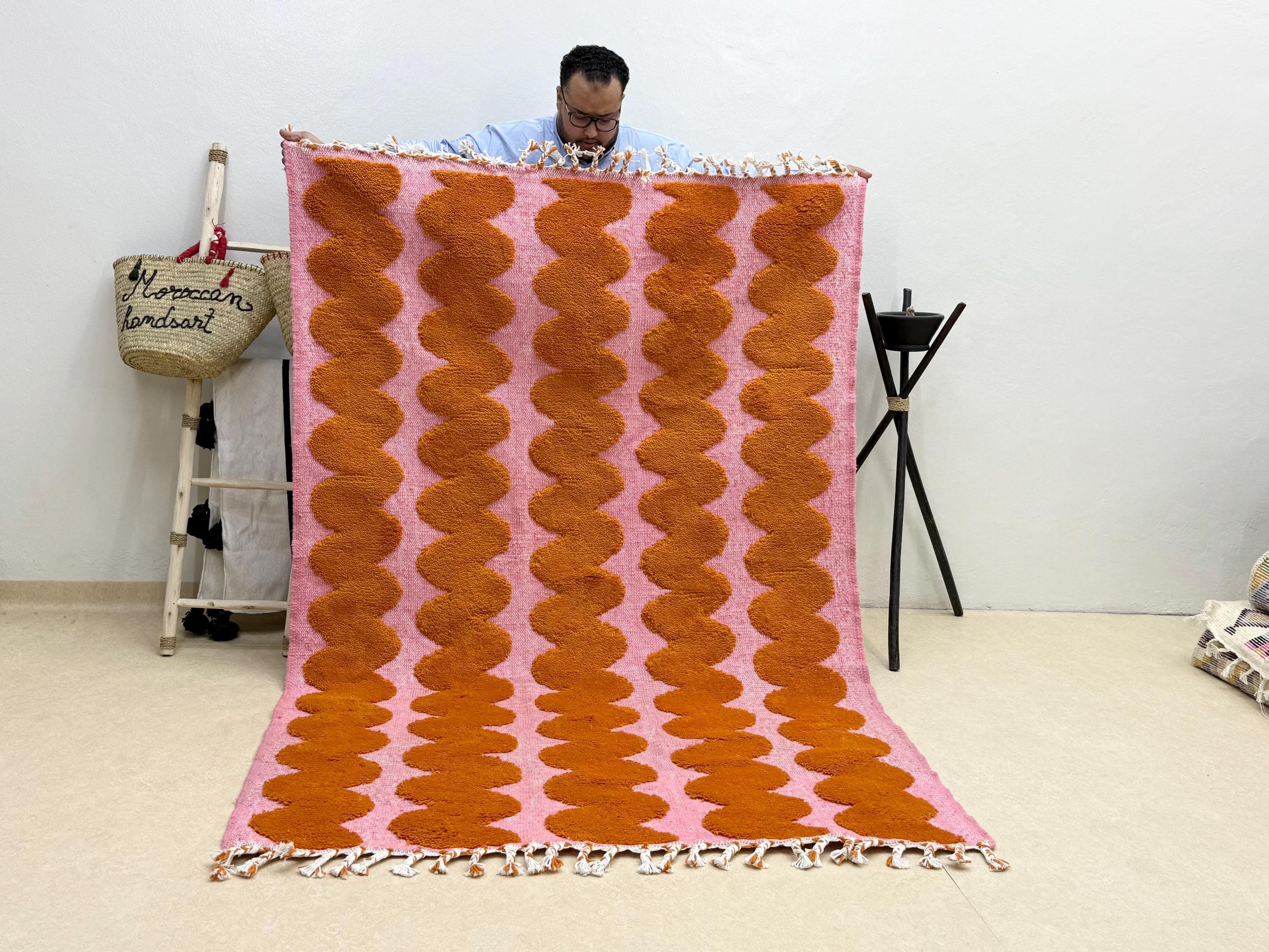 Transform your space with our Custom Moroccan Wool Rug! Featuring a stunning Beni Ourain design with vibrant orange and pink stripes, this handwoven Berber rug adds a warm, stylish touch to any room. Crafted from high-quality wool, this area wool shag rug is not only soft underfoot but also durable for everyday life. Perfect for living rooms, bedrooms, or cozy nooks, it’s a unique piece of art that celebrates Moroccan craftsmanship. Elevate your decor with this beautiful, custom-designed rug today!