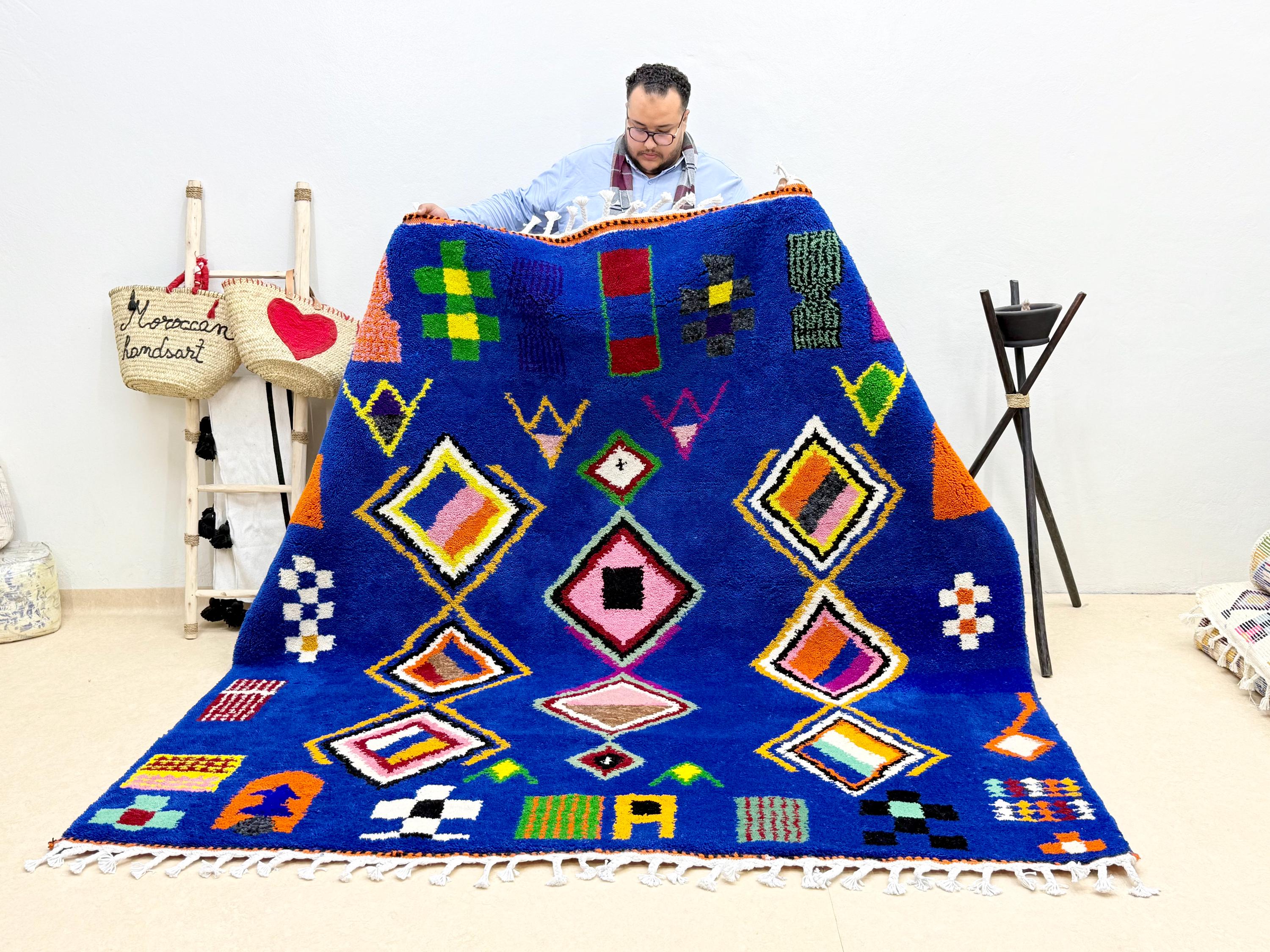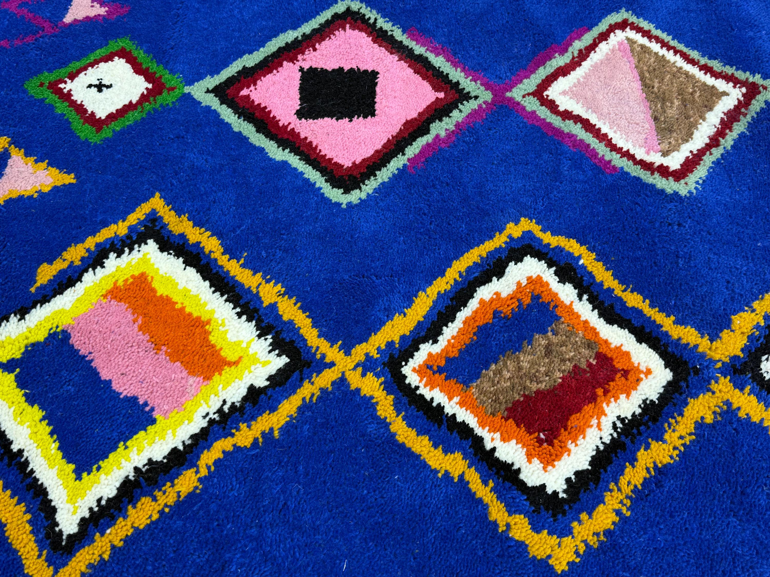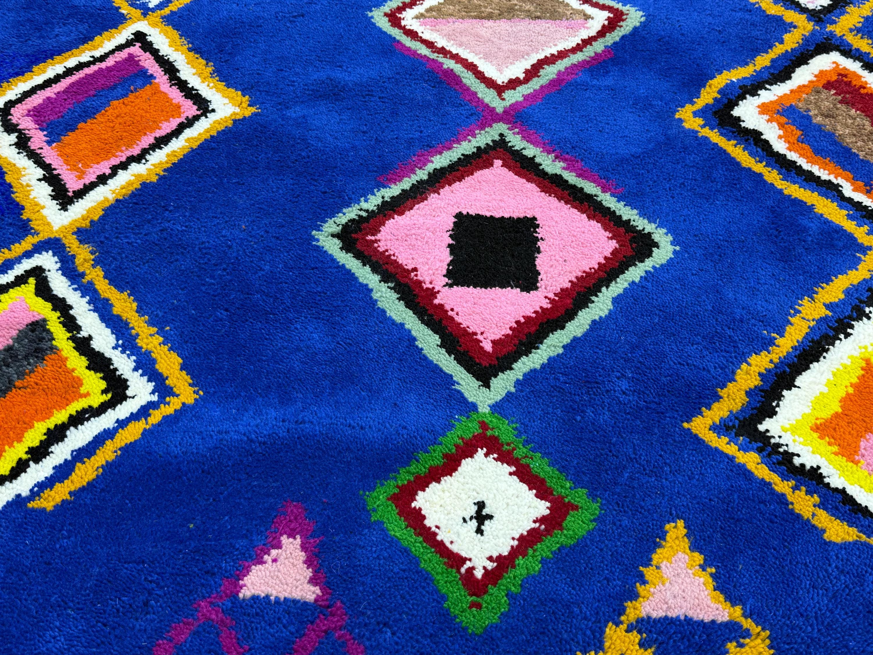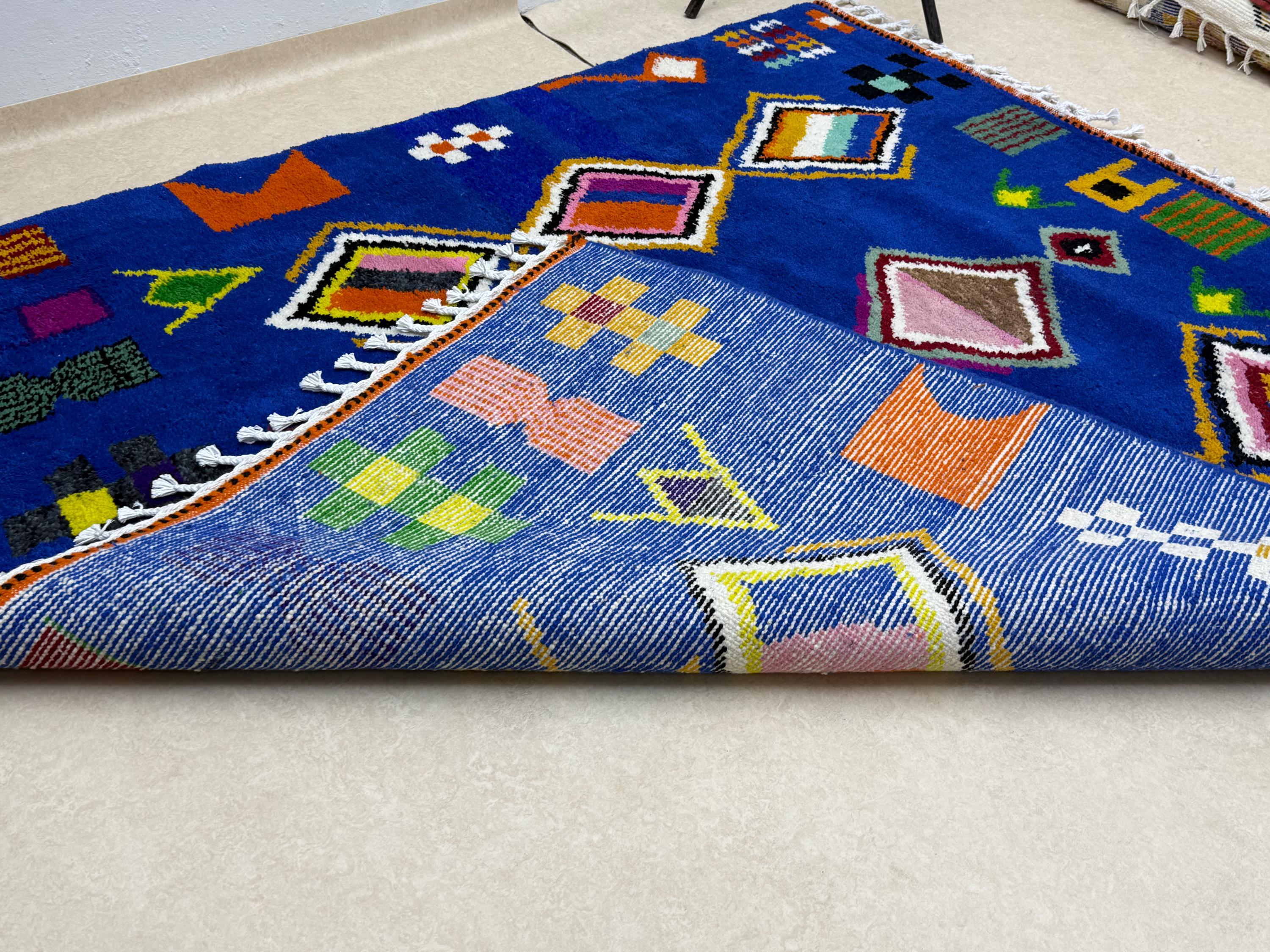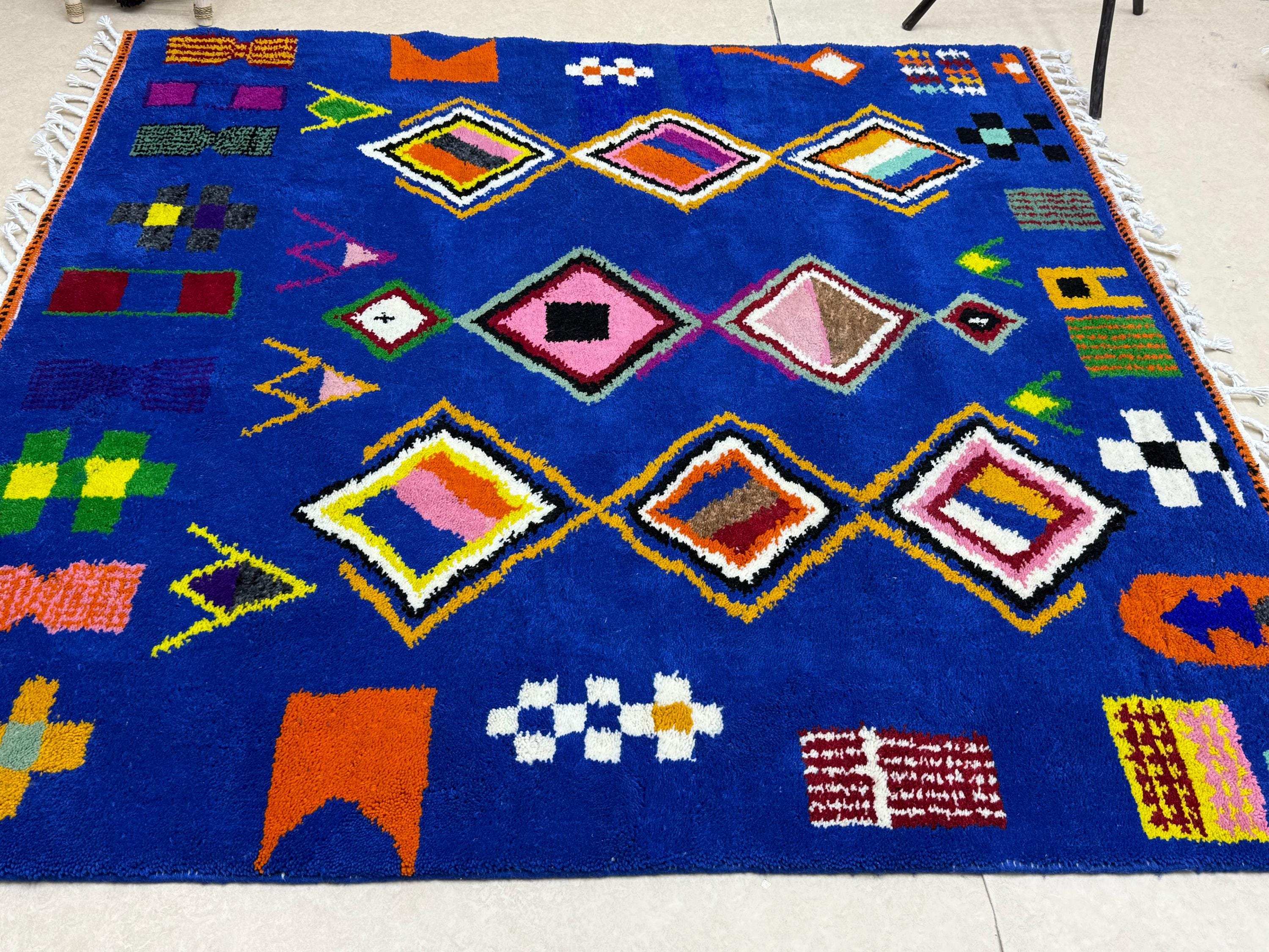 Elevate your space with our stunning ROYAL BLUE RUG, a unique Abstract Moroccan Rug that blends tradition and modern design. This Custom Beni Ourain Rug is meticulously handcrafted, showcasing the artistry of Berber craftsmanship. The striking blue background adds a bold pop to any room while providing comfort underfoot. Perfect for contemporary settings, our Modern Wool Rug is not just a decor piece; it's a conversation starter. Transform your home today with this exquisite blue area rug!