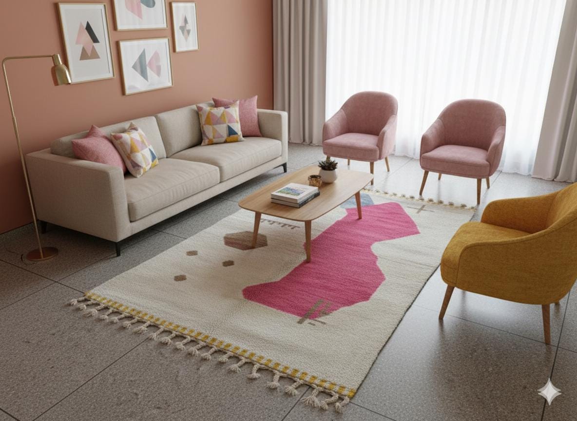 Transform your space with our stunning Ivory and Pink Moroccan Rug! Handcrafted from premium Berber wool, this luxurious area rug features a modern tribal abstract pattern that perfectly complements boho chic living room decor. Whether placed in a cozy nook or as the centerpiece of your home, this rug adds warmth and sophistication. Embrace comfort and style with this unique piece that tells a story of artisanal craftsmanship. Enhance your decor today with this exquisite addition!