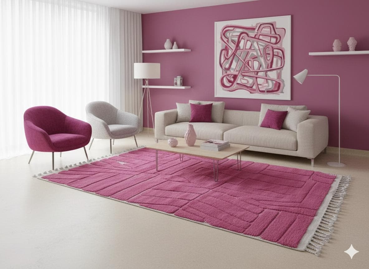 Elevate your space with our stunning Beni Ourain rug, a true statement piece for any home. This Moroccan rug features an abstract Pink design that seamlessly blends elegance with comfort. Our custom area rug is crafted with care, showcasing authentic Berber artistry. Ideal for modern and eclectic decor, this Pink area rug is perfect for transforming your living room or bedroom. Choose your custom design and make your home uniquely yours. Experience the beauty of Moroccan Pink rugs today!