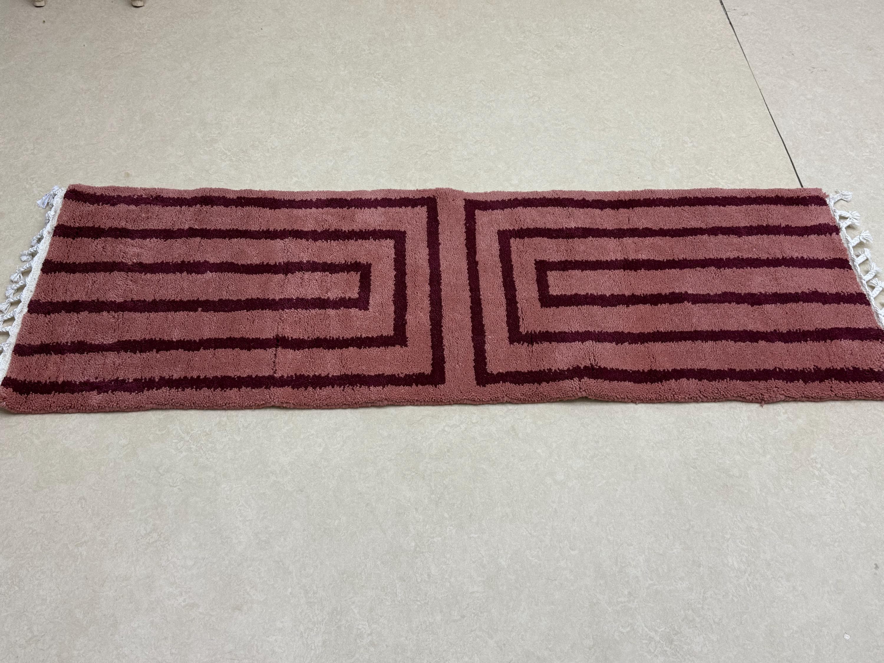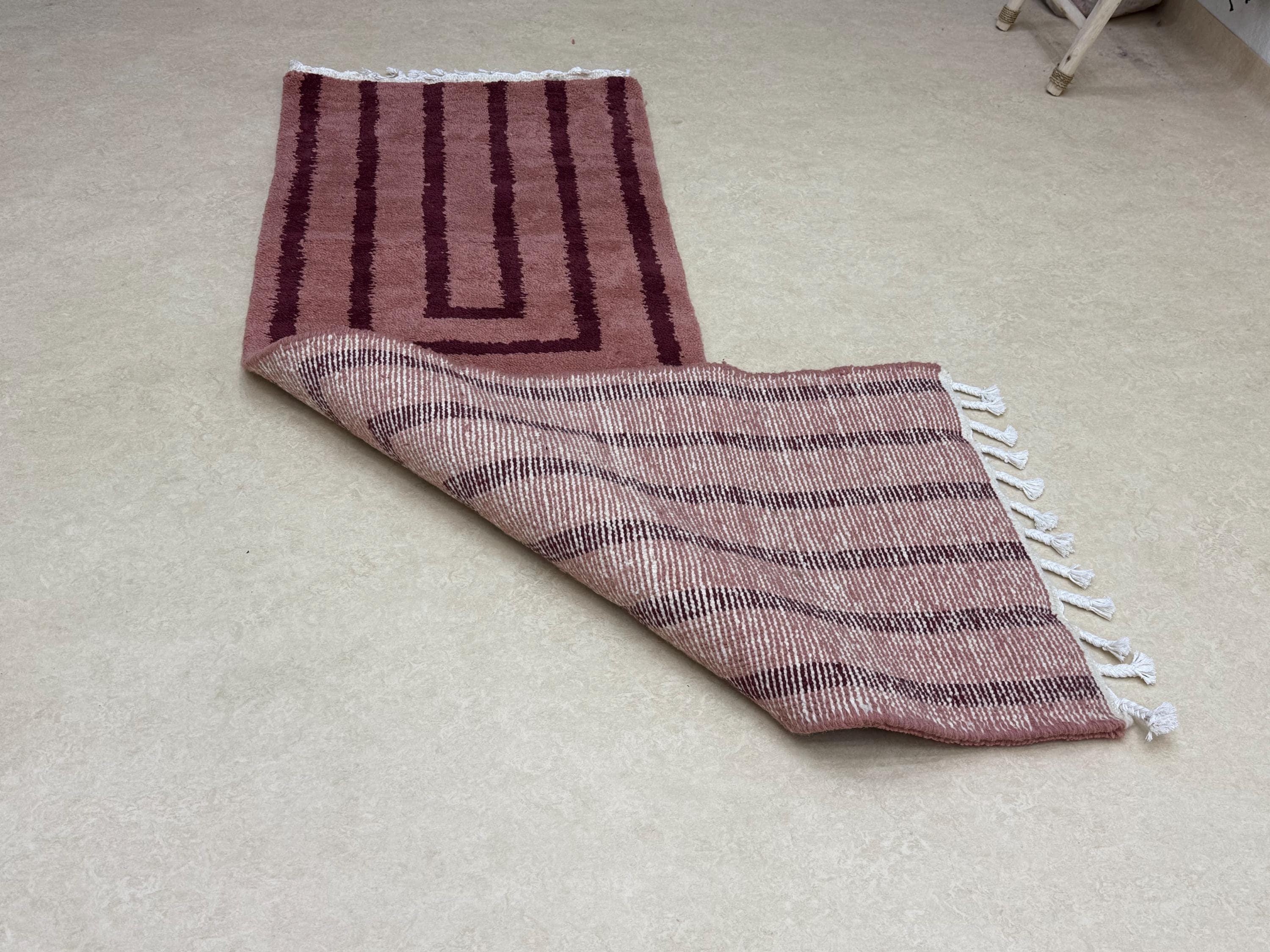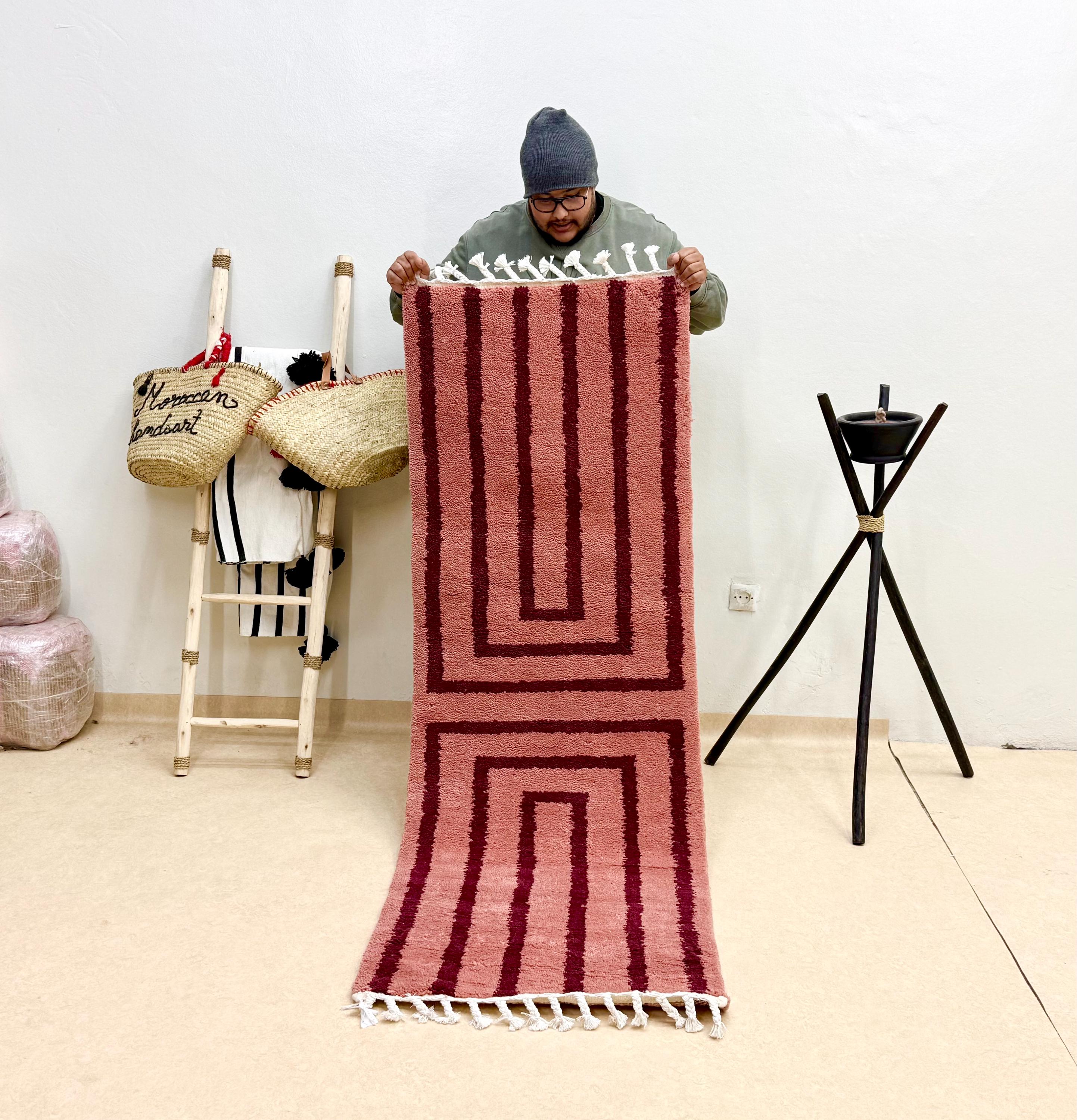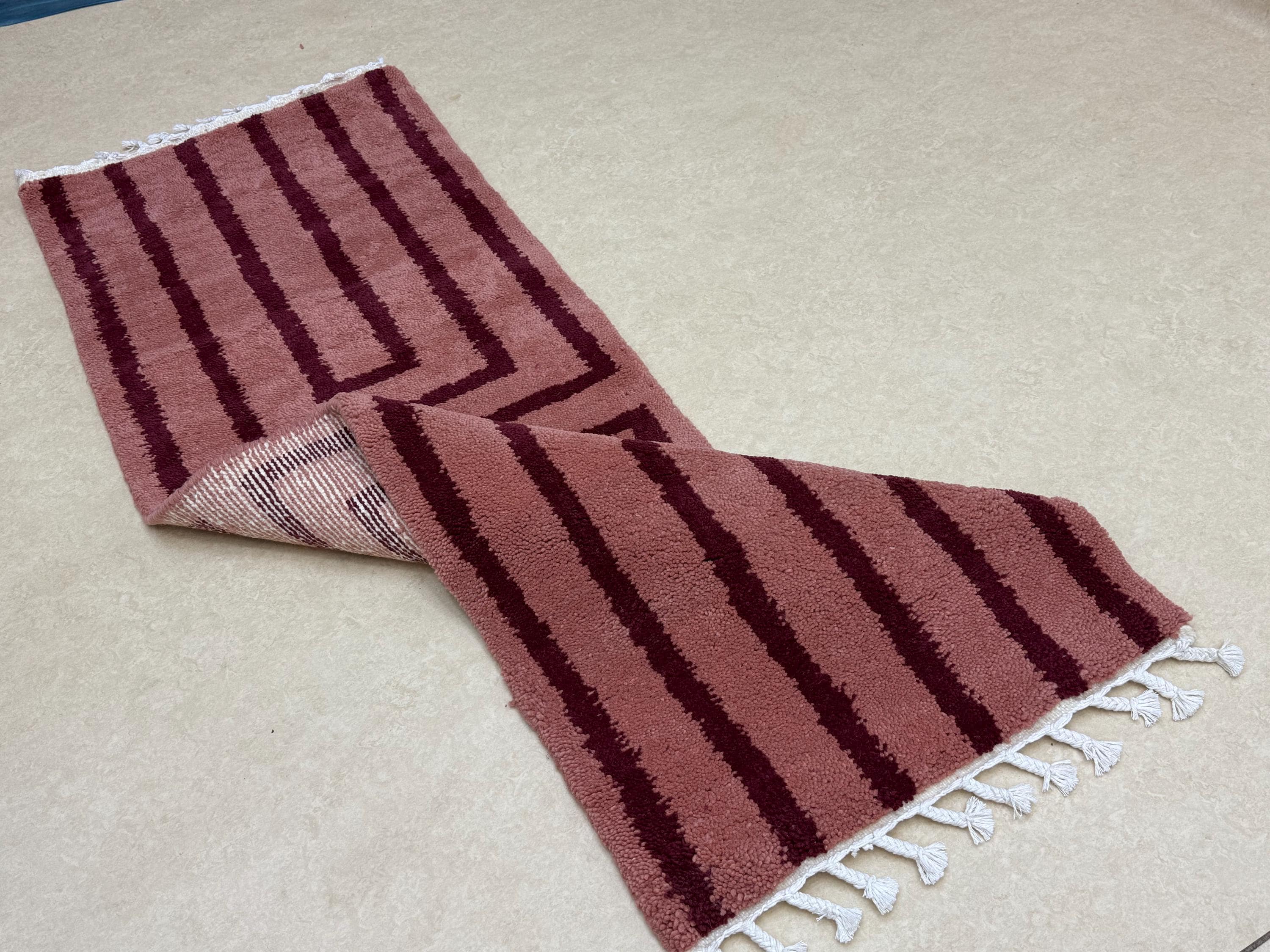 Transform your space with our stunning Moroccan RUNNER! This Custom made Beni Ourain Rug features a unique striped design that beautifully complements any hallway. Handwoven from soft, durable wool, this shag pink Berber rug adds warmth and texture to your home decor. Perfect for high-traffic areas, it combines tradition with modern flair. Elevate your interiors with a rug that's not just a floor covering, but a statement piece. Order your bespoke runner today and experience the beauty of handcrafted elegance!