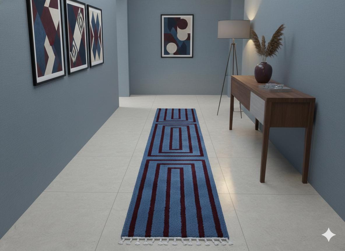 Transform your space with our stunning Moroccan RUNNER! This Custom made Beni Ourain Rug features a unique striped design that beautifully complements any hallway. Handwoven from soft, durable wool, this shag Blue Berber rug adds warmth and texture to your home decor. Perfect for high-traffic areas, it combines tradition with modern flair. Elevate your interiors with a rug that's not just a floor covering, but a statement piece. Order your bespoke runner today and experience the beauty of handcrafted elegance!
