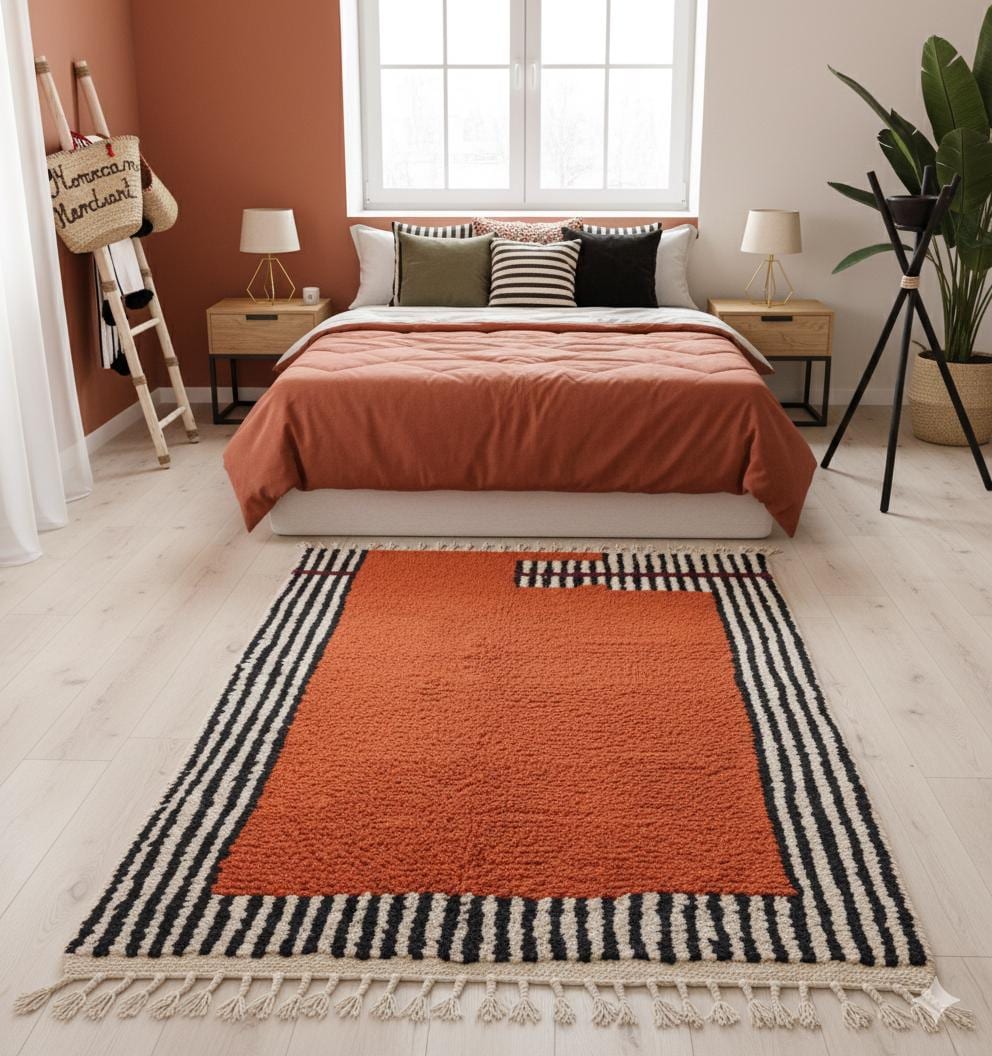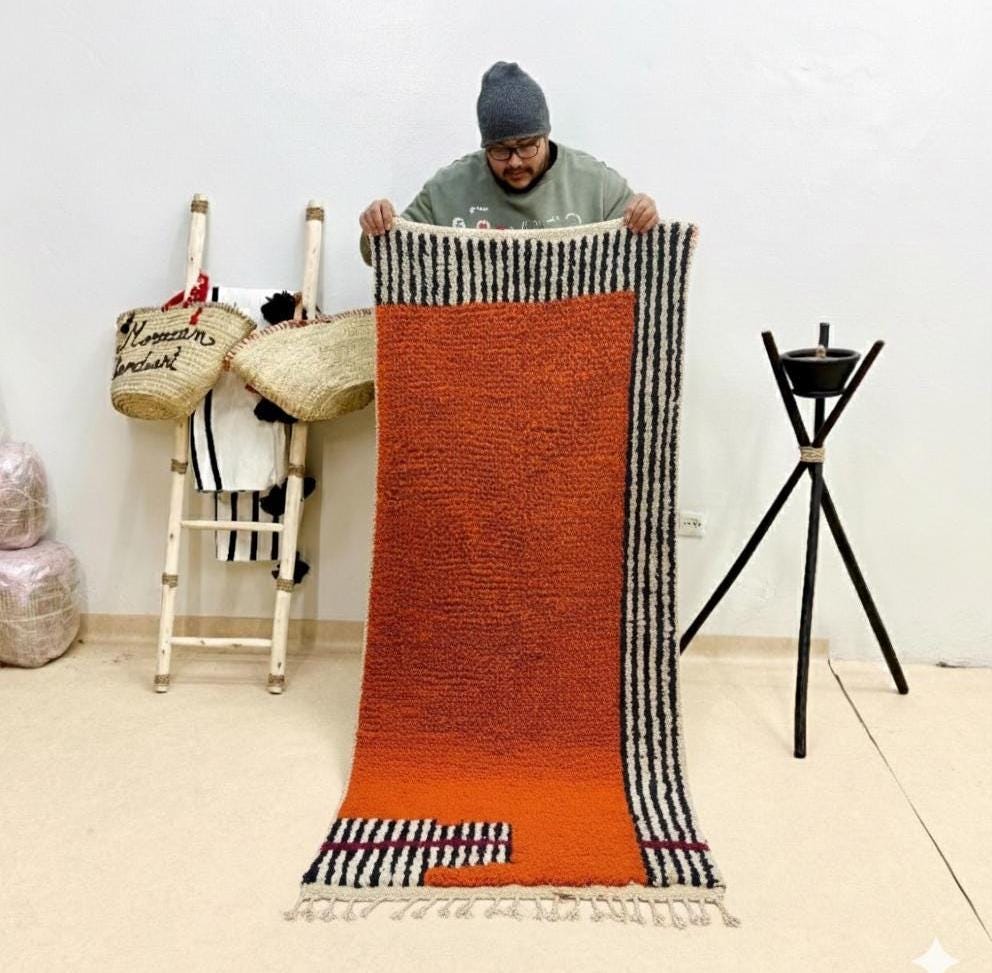 Transform your space with our stunning Moroccan RUNNER! This Custom made Beni Ourain Rug features a unique striped design that beautifully complements any hallway. Handwoven from soft, durable wool, this shag Orange Berber rug adds warmth and texture to your home decor. Perfect for high-traffic areas, it combines tradition with modern flair. Elevate your interiors with a rug that's not just a floor covering, but a statement piece. Order your bespoke runner today and experience the beauty of handcrafted elegance!