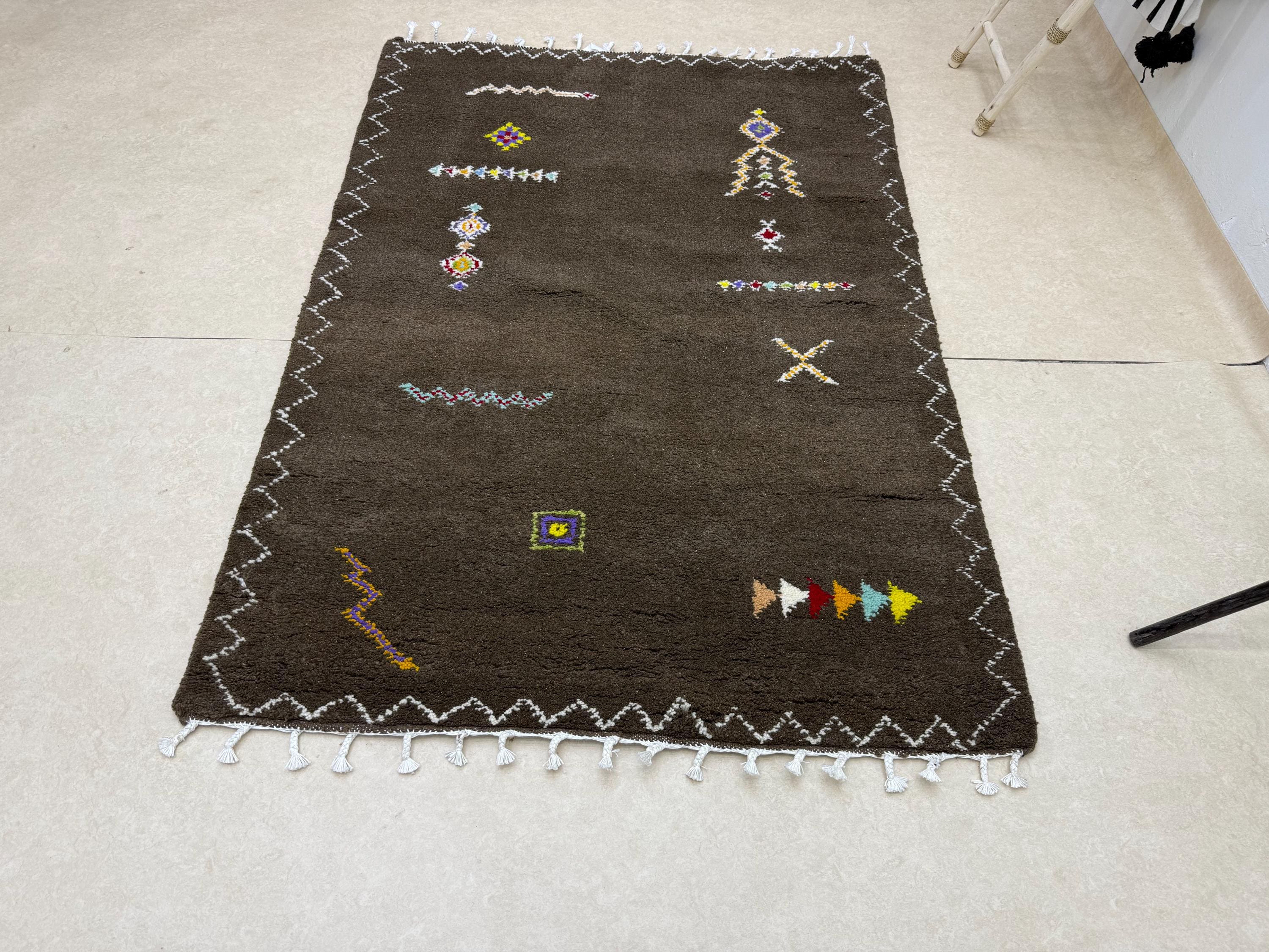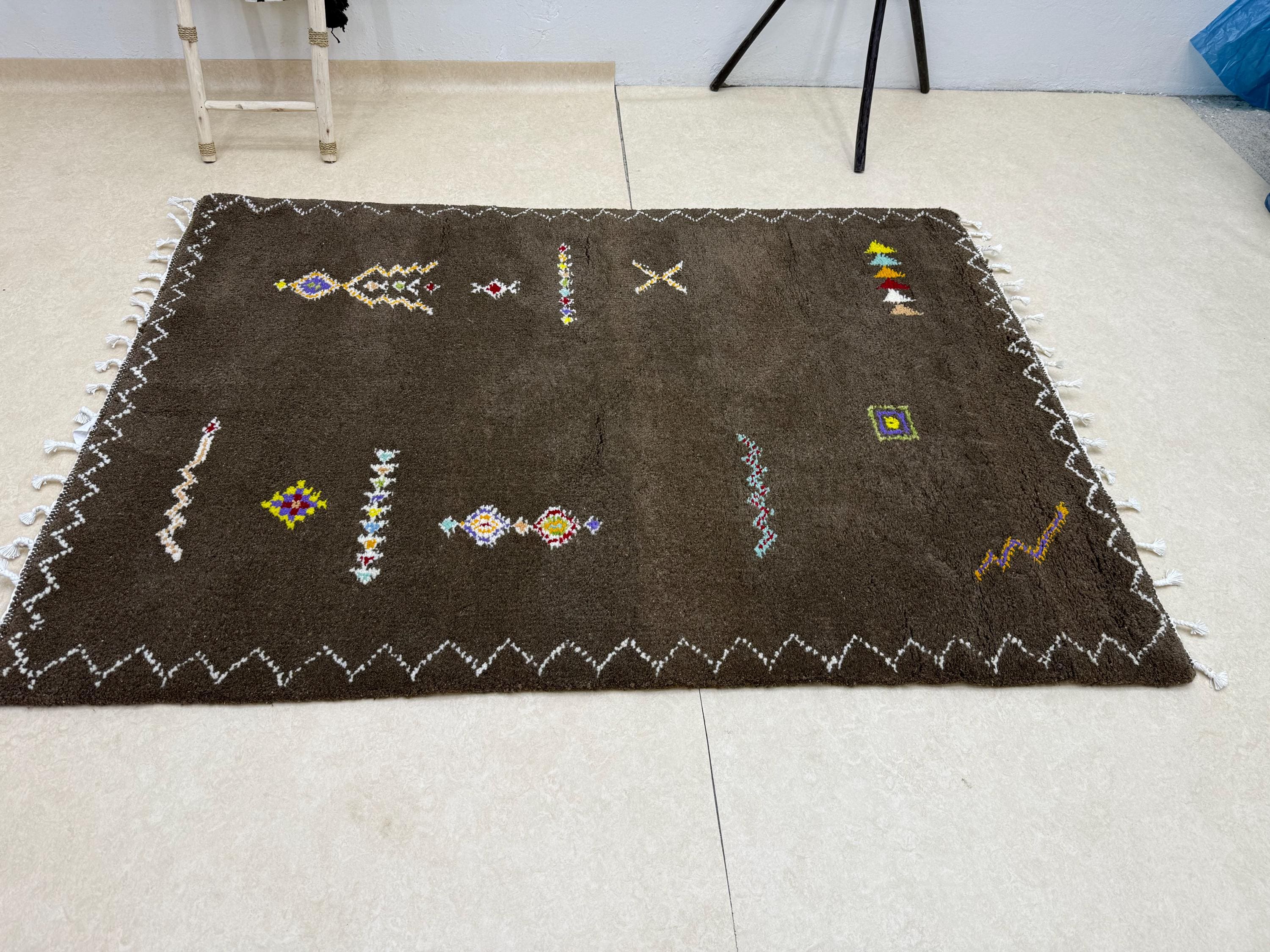 Elevate your space with our stunning 6.7x5ft Moroccan Beni Ourain rug, handcrafted from luxurious wool. This abstract rug showcases a unique design that adds a chic touch to any room. Perfect as a brown Berber area rug, it beautifully blends style and comfort. Each piece is handmade, ensuring you receive a one-of-a-kind treasure. Transform your home with this exquisite blue wool rug that promises to enhance your decor while providing warmth and coziness. Perfect for living rooms, bedrooms, or any stylish setting!