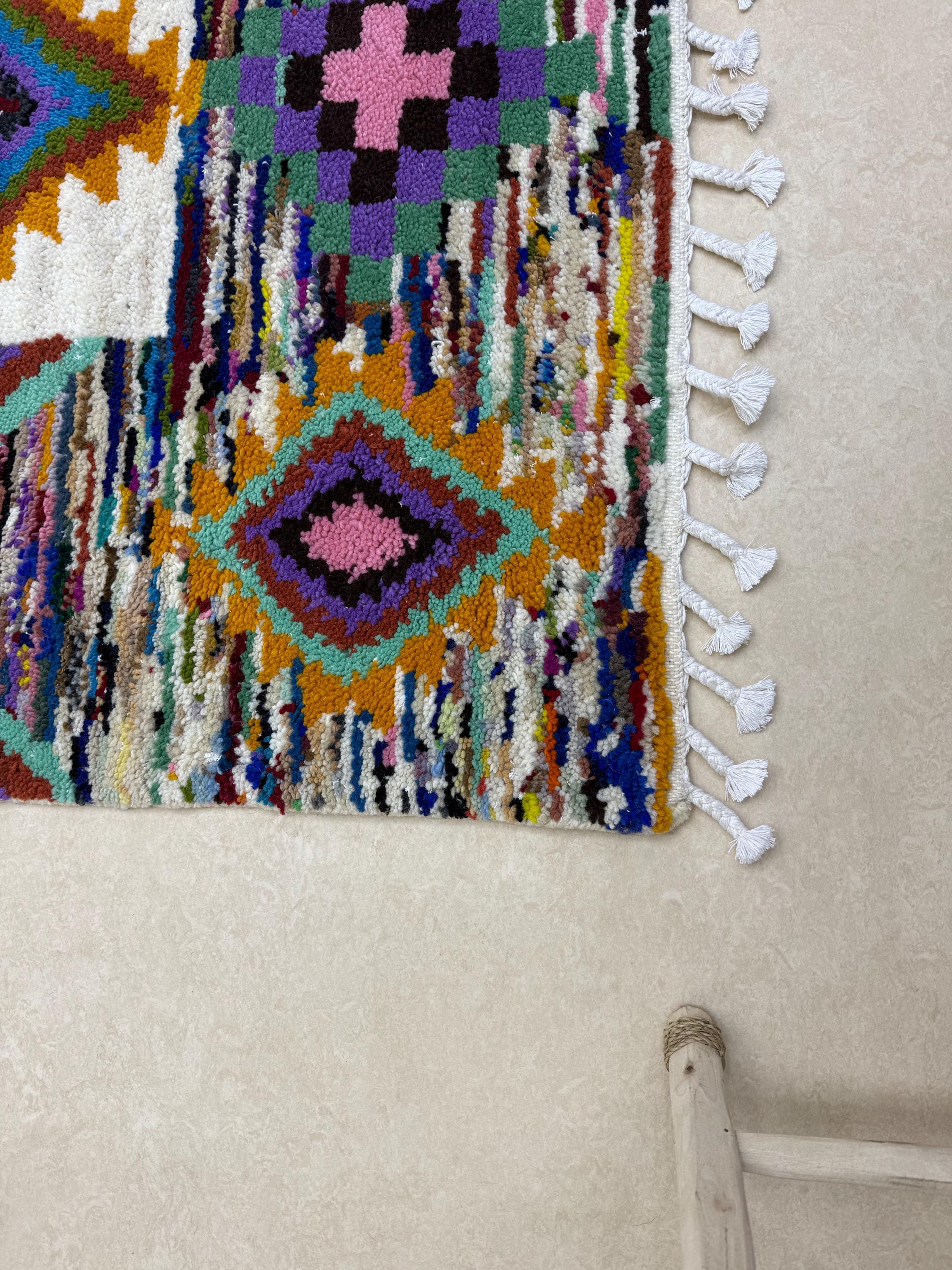 Transform your space with our stunning Multicolor Rug 6x4, an Authentic Moroccan Rug that embodies the charm of Berber craftsmanship. This abstract floor rug features intricate designs, making it a perfect Bohemian handmade wool rug for any room. Elevate your decor with a Beni Ourain area rug that adds warmth and character to your home. Each Beni rug is unique and crafted with care, offering a beautiful touch that blends tradition with modern style. Embrace comfort and style today!