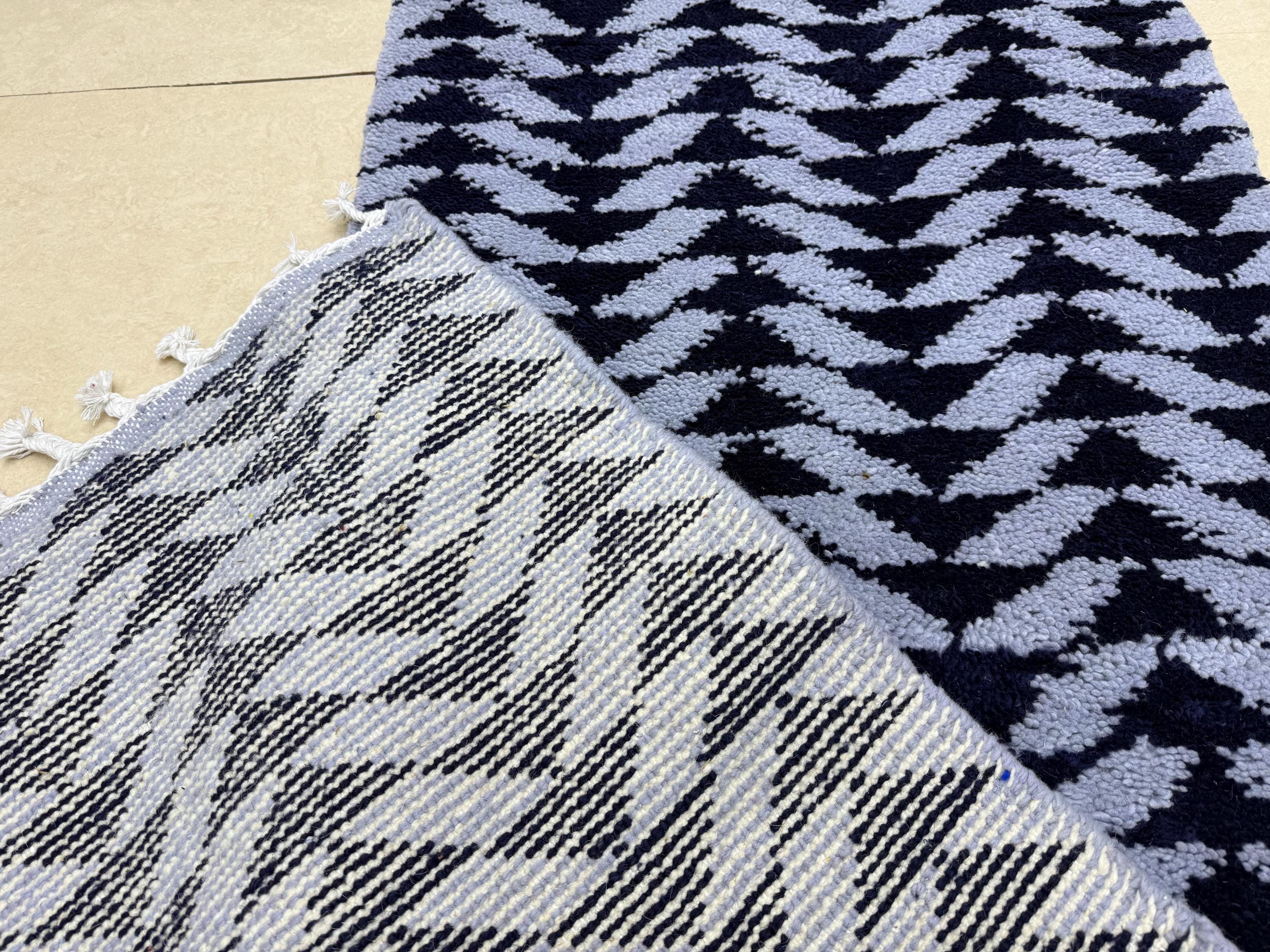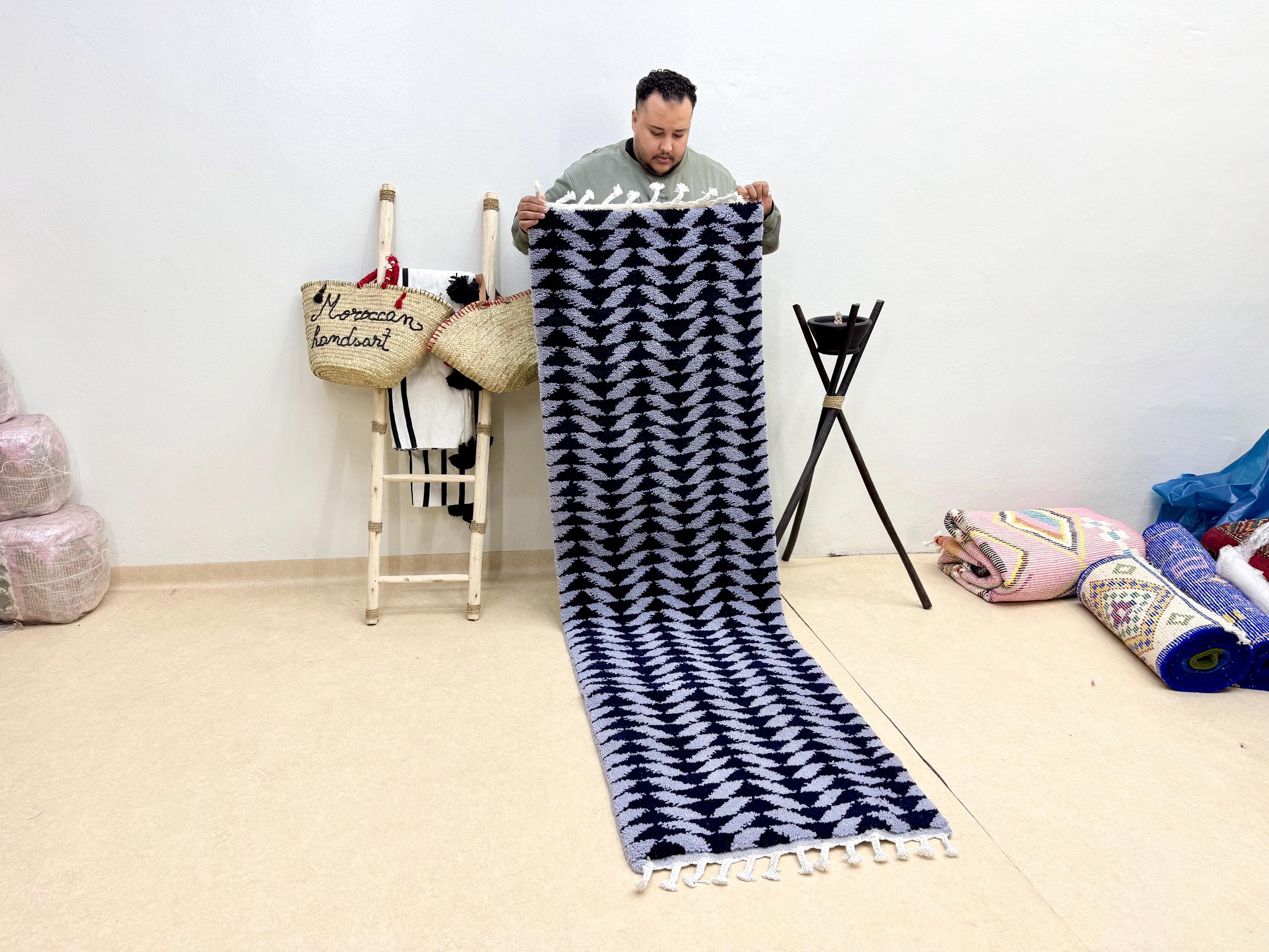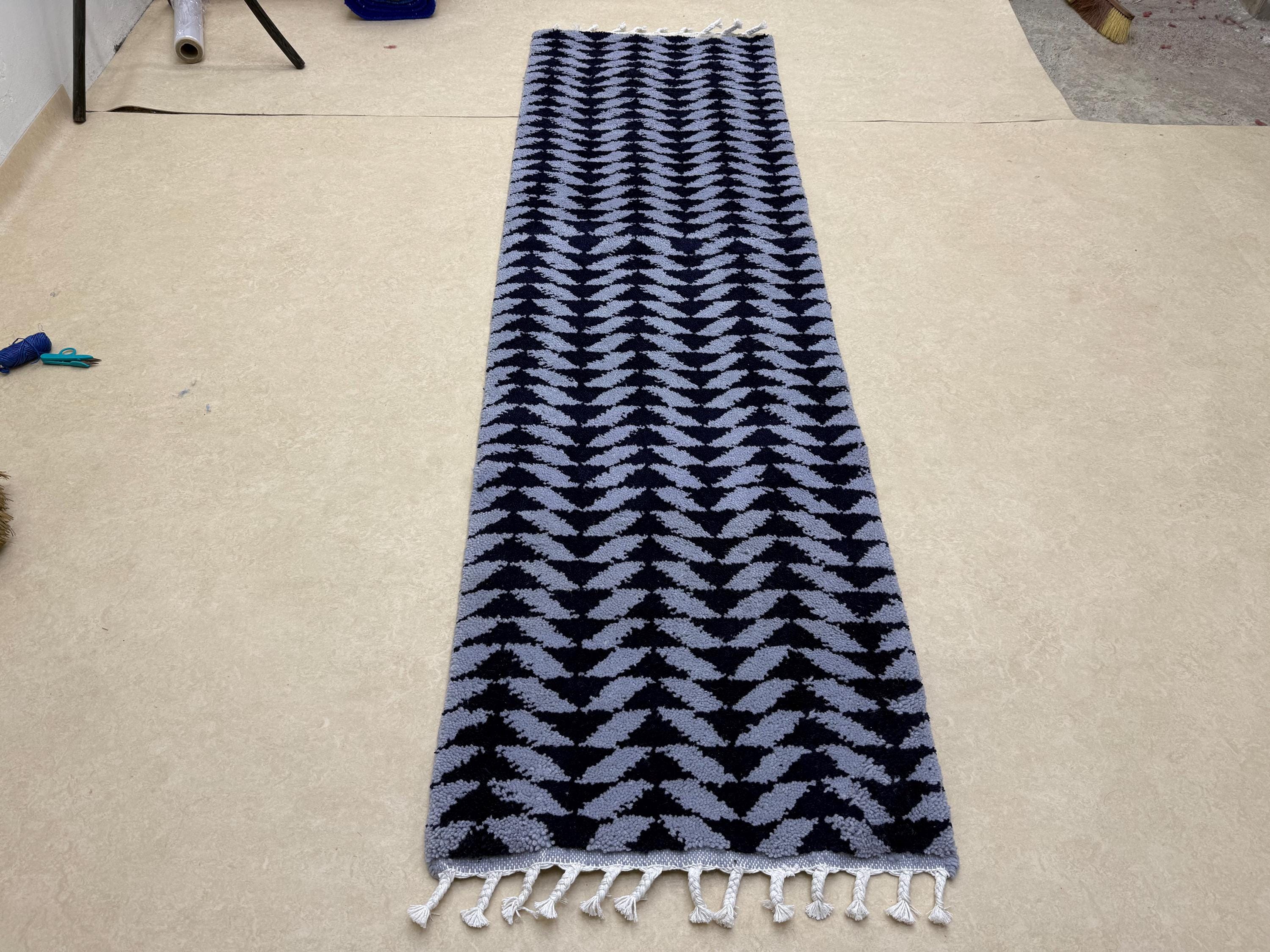 Transform your space with our stunning Beni Ourain Runner Rug! Handcrafted from premium blue wool, this Moroccan rug adds a touch of elegance to any hallway. Its abstract Berber design brings a unique charm, making it the perfect custom handmade accent for your home. Ideal for high-traffic areas, this versatile area runner carpet effortlessly blends style and functionality. Elevate your decor with this exquisite piece that showcases the artistry of Moroccan craftsmanship. Order yours today!