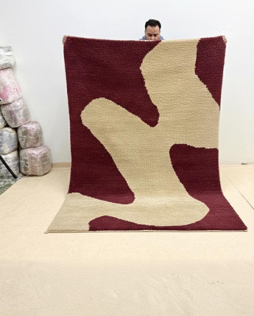 Transform your space with our Burgundy Ivory Moroccan Rug! This handmade wavy abstract Berber wool shag carpet fuses traditional craftsmanship with modern design. Its rich burgundy and ivory tones add warmth and elegance to any room. Perfect for living areas, bedrooms, or as a statement piece, this rug offers both comfort and durability. Elevate your decor while enjoying the unique texture and style of this exquisite piece. Shop now and experience the beauty of Moroccan artistry in your home!