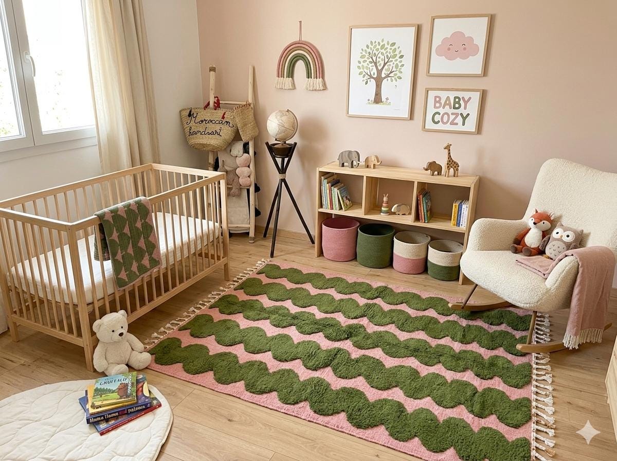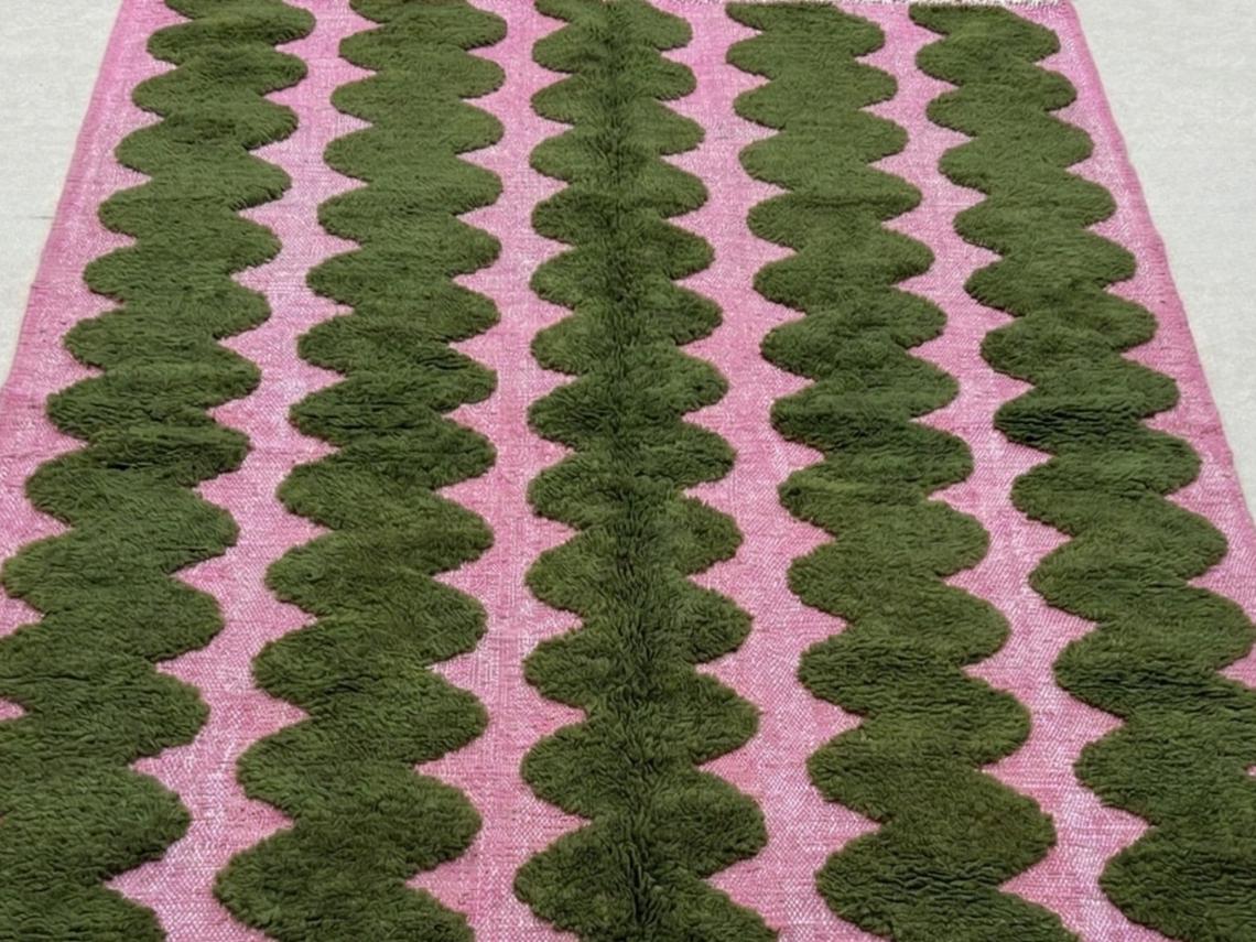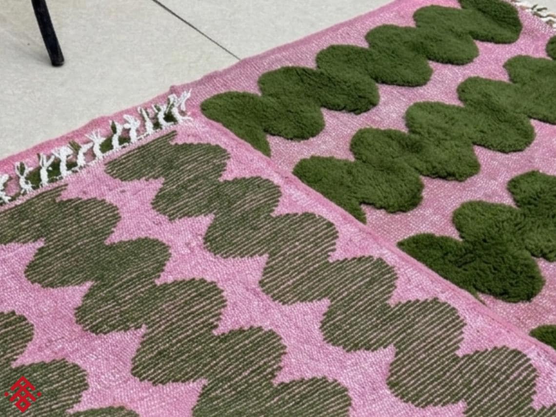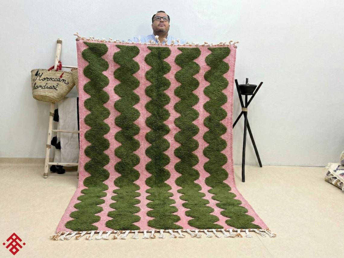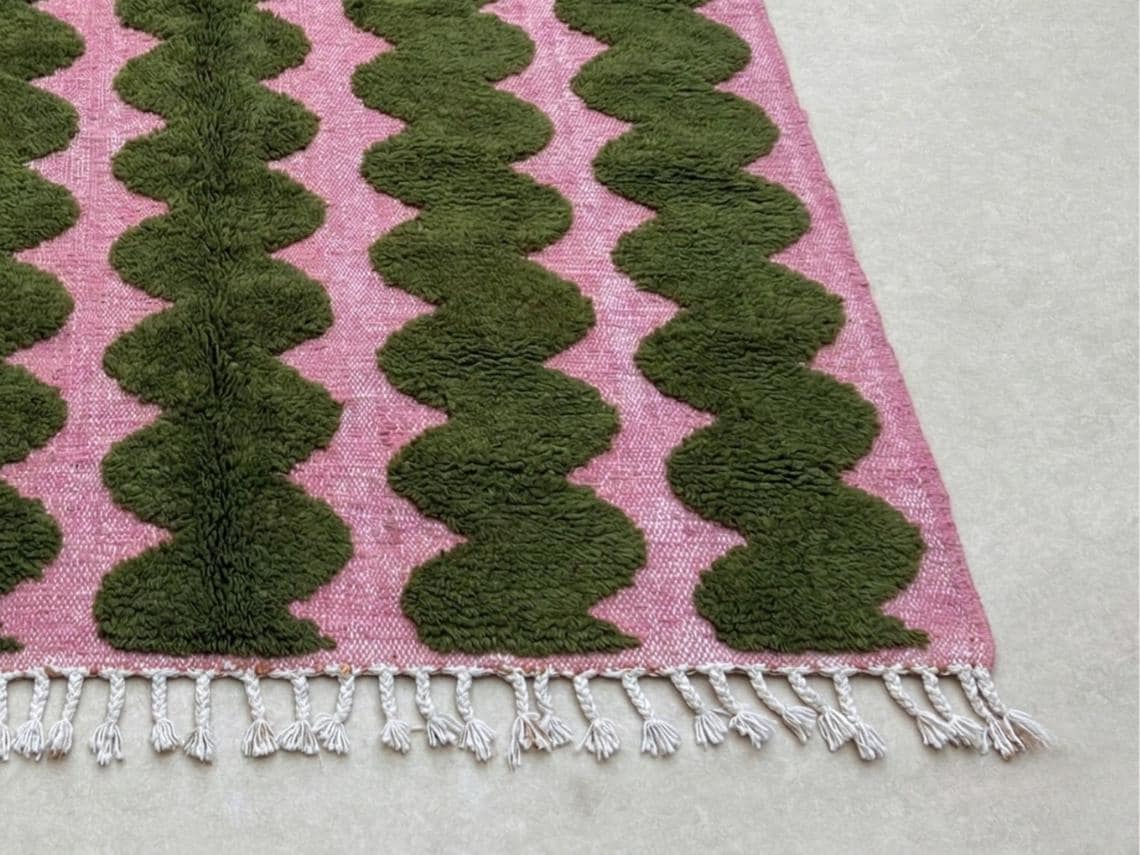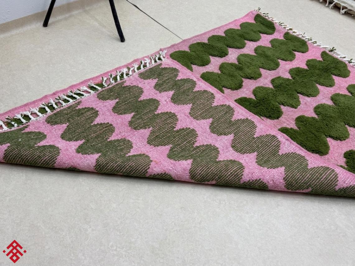 Moroccan rug / beni ourain rug / handmade rug/ area rug / Moss Green & Pink rug